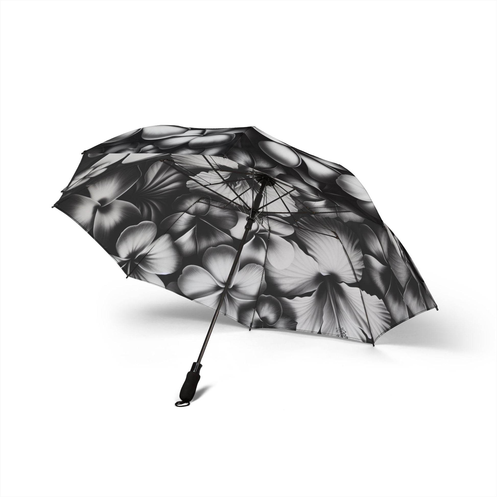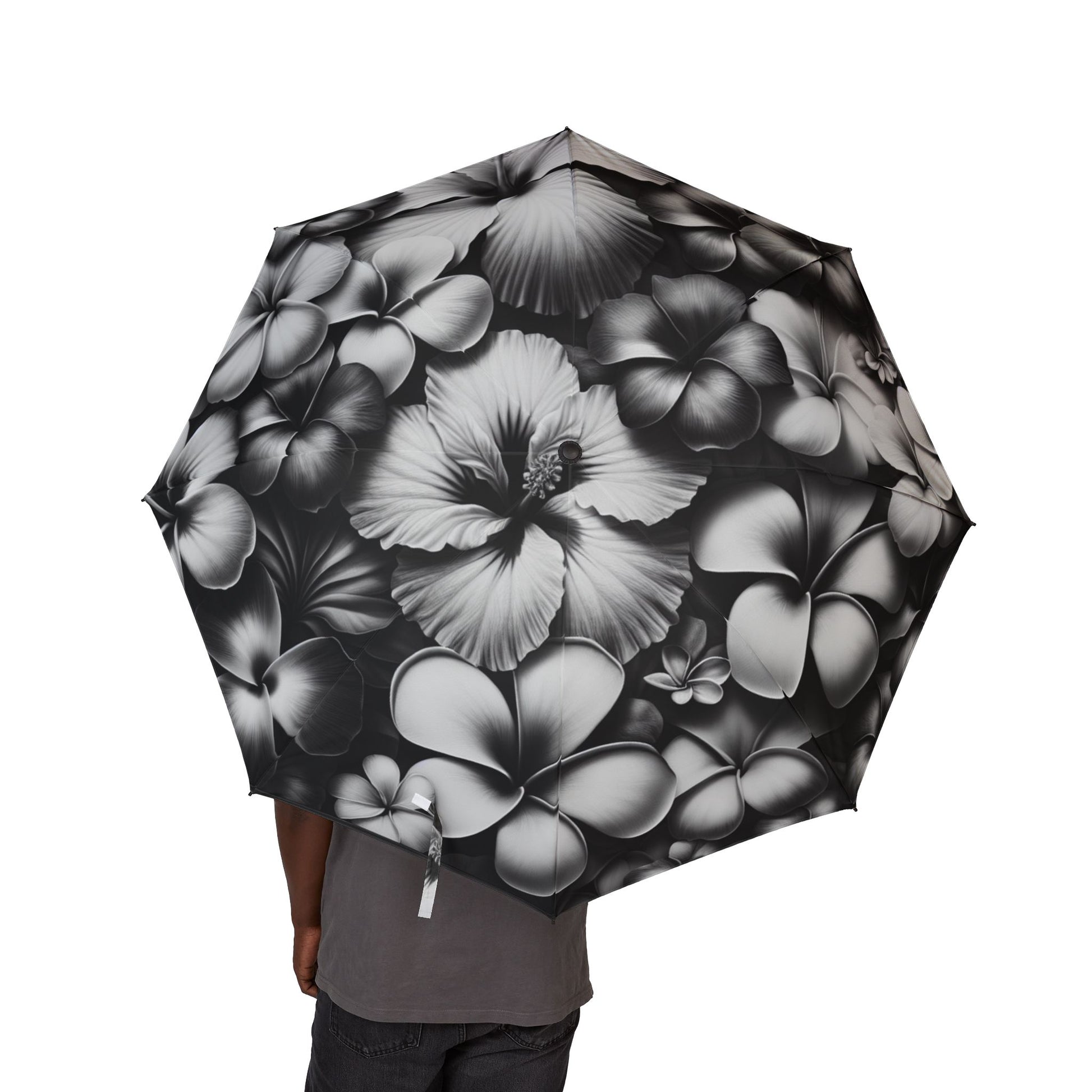 black and white Hawaiian flowers Umbrella - Semi-Automatic Foldable Design