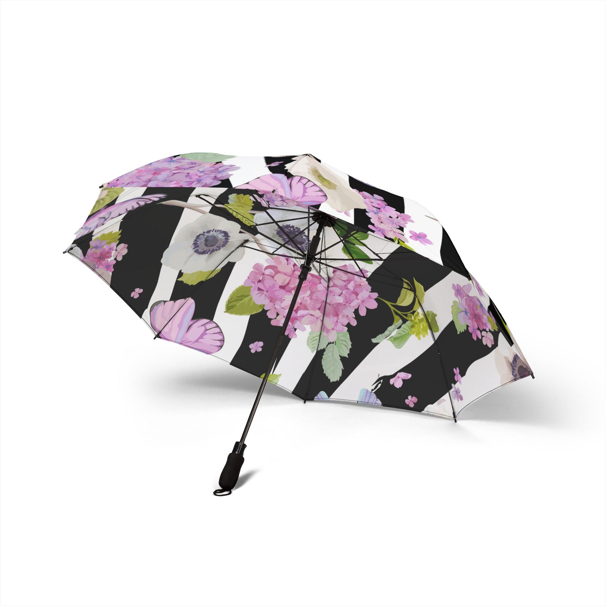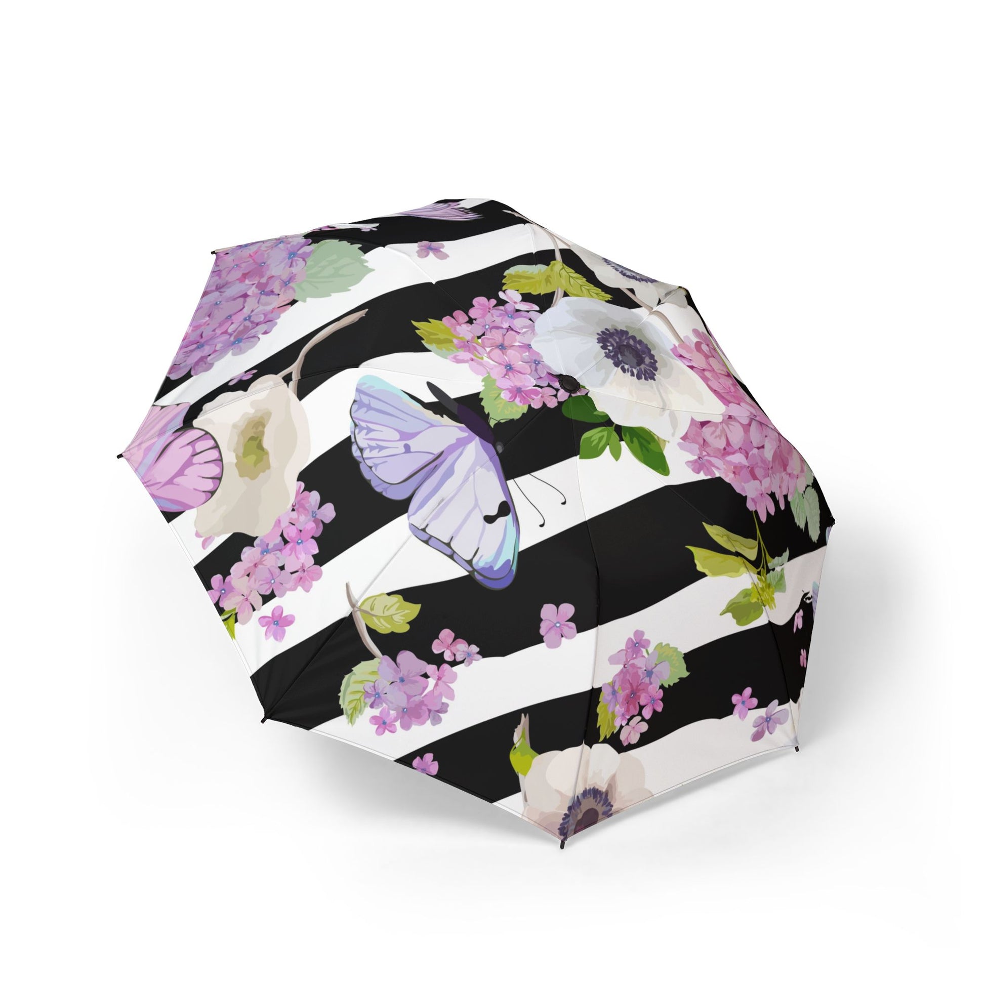fun Hydrangea and butterfly Umbrella - Semi-Automatic Foldable Design